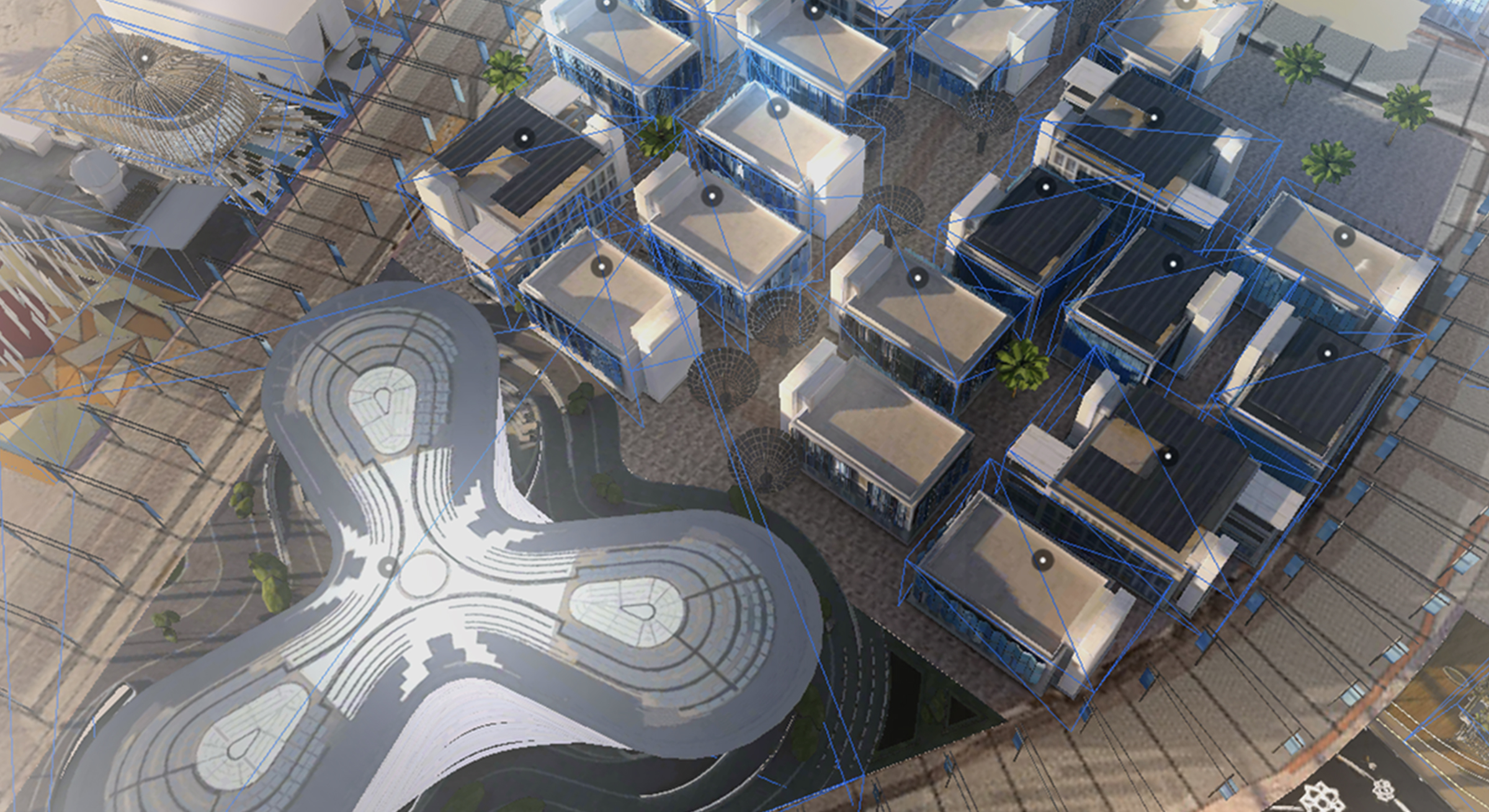 To enable online visitors from all around the world to have a chance to feel even just a glimpse of the greatness of the actual physical site, we built a perfect digital replica of the absolutely humongous Expo site. Country & Thematic pavilions, Roads, Flags, Stations, Hotels, everything has been carefully modeled from pictures and other sources including existing unoptimised 3D models, to create accurate digital counterparts to those marvelous architectural wonders.